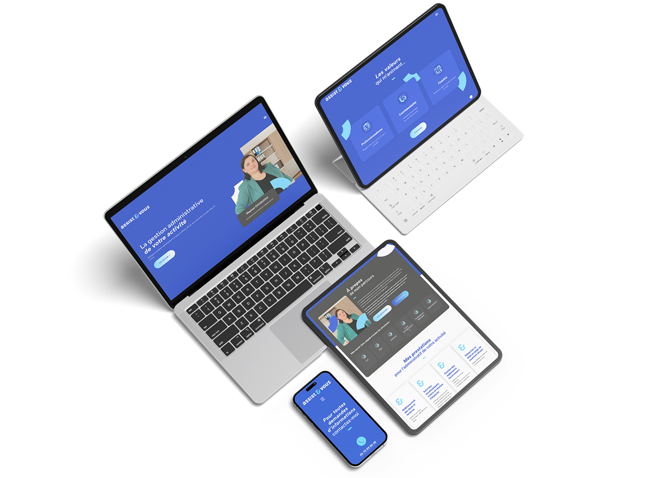 La conception du site vitrine d’Assist et Vous. Le choix d’un design ludique et épuré met en avant les valeurs et le parcours de Marion, tout en présentant les différents services qu’elle propose.