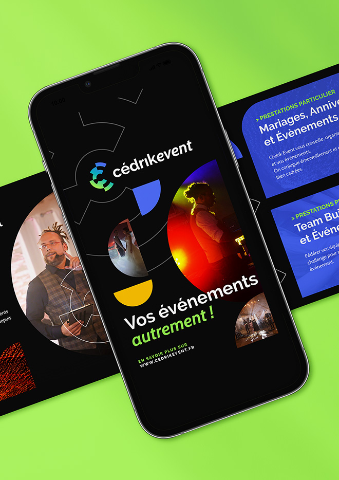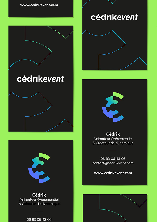 Accompagnement Cedrikevent dans l’évolution de son identité et de ses supports de communication. Un projet complet, alliant design, stratégie et digital :