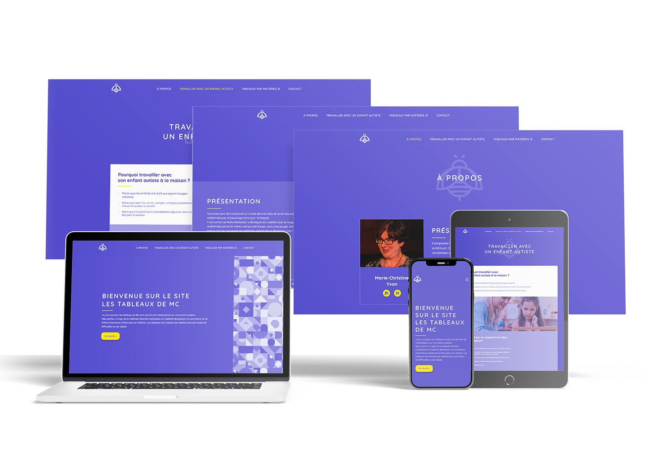 Marie-Christine Yvon, enseignante en Sciences Physiques et mère d’enfants porteurs de TSA (troubles du spectre autistique), a développé des outils pédagogiques basés sur la méthodologie Montessori pour l’apprentissage du français, des mathématiques et des sciences, adaptés aux niveaux du primaire.