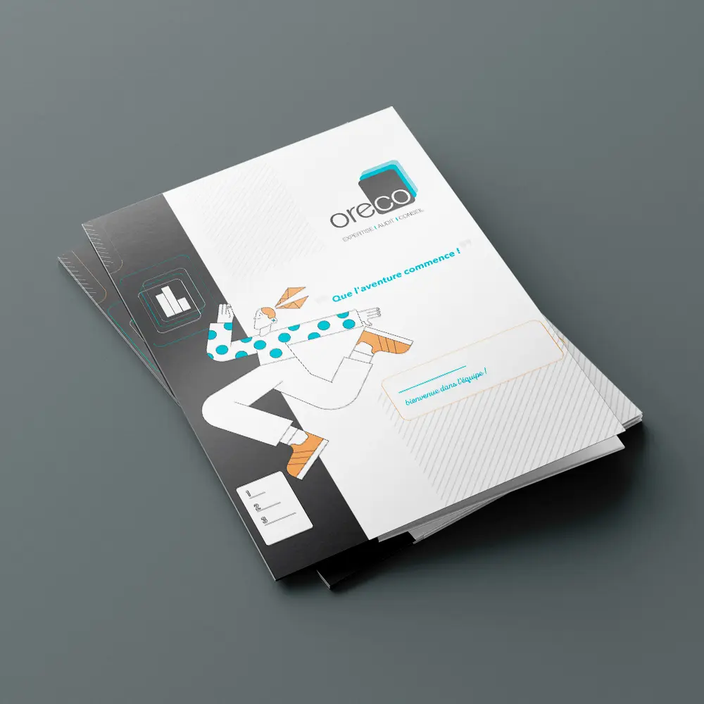 Réalisation d’une chemise à double rabats. Celle-ci a pour vocation d’être remise à l’arrivée d’un nouveau collaborateur ou d’une nouvelle collaboratrice.