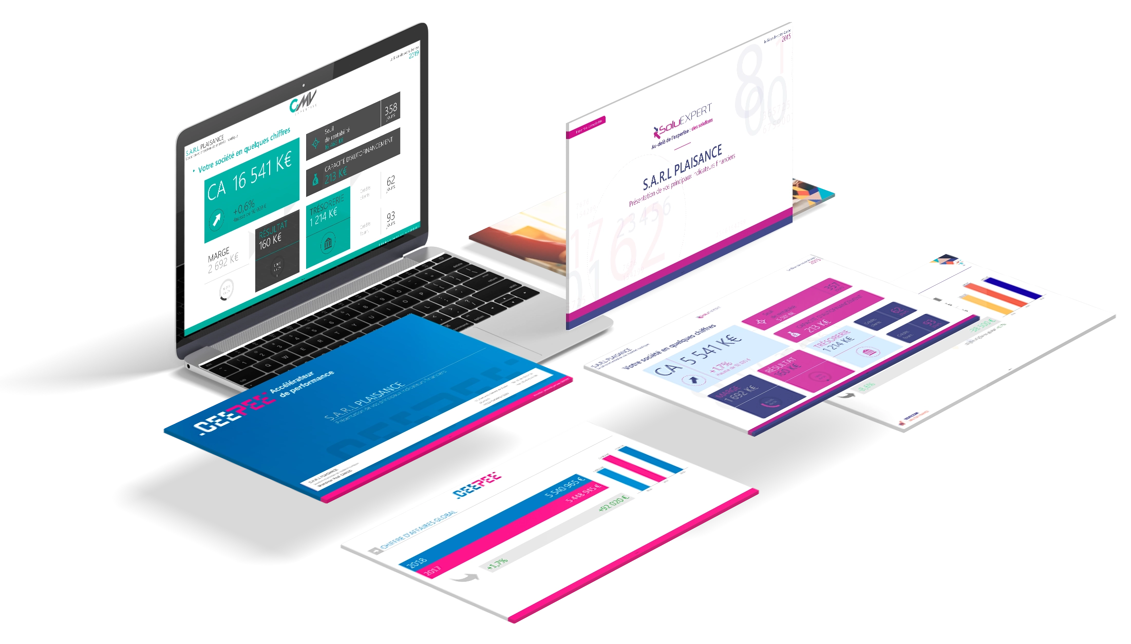 Personnalisation des états de rendus de logiciels de gestion. Chaque logiciel ayant un diaporama et un rapport, ceux-ci sont personnalisés :